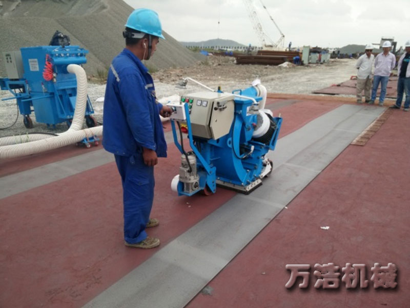 钢板抛丸机用于清理钢板表面,船舶甲板,钢箱梁桥梁甲板,石油钻井平台。用移动抛丸机可对船舶甲板,钢箱梁桥梁甲板,石油钻井平台,化工油罐,船舶内表面及钢板表面进行去除氧化皮,除锈和粗化处理,其粗糙等级为Sa2.5-3.0级,充分满足了防腐涂装或是重防腐涂装的前处理要求。